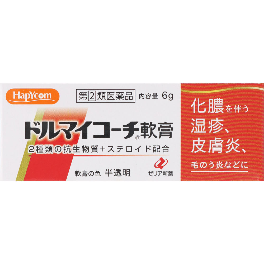 ドルマイコーチ軟膏は抗菌力を有する二つの抗生物質,バシトラシンとフラジオマイシンを配合し,さらに痒みと炎症を抑えるヒドロコルチゾンを加え,細菌感染症及び炎症性の皮膚疾患に効果を発揮する皮膚疾患治療薬です。