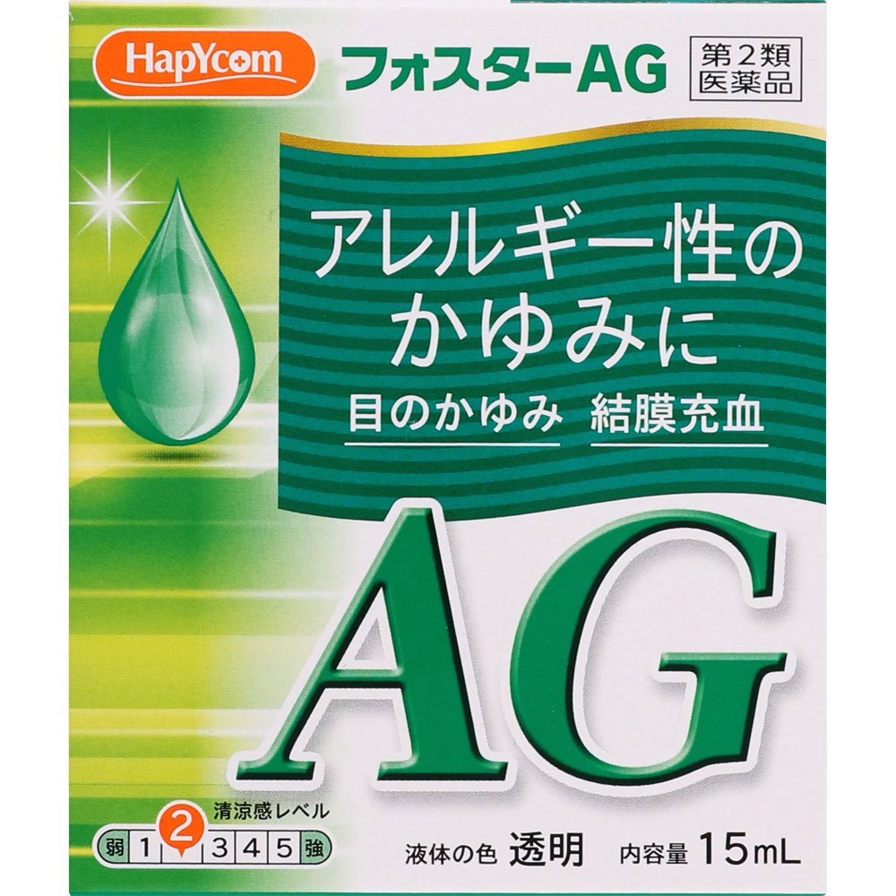 フォスターAGには、抗炎症剤をはじめ、抗ヒスタミン剤や血管収縮剤など、5種の有効成分が配合されていますので、それらの総合作用によりアレルギー性眼疾患の種々の不快な症状(目の充血、かゆみ等)を和らげます。