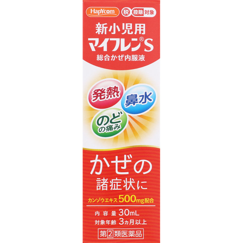 ●新小児用マイフレンSは、鼻水・鼻づまり・くしゃみ・のどの痛み・せき・たん・悪寒・発熱・頭痛・関節の痛み・筋肉の痛みなど、かぜの諸症状に対して効果を発揮し、かぜの治癒を早める総合かぜ薬です。