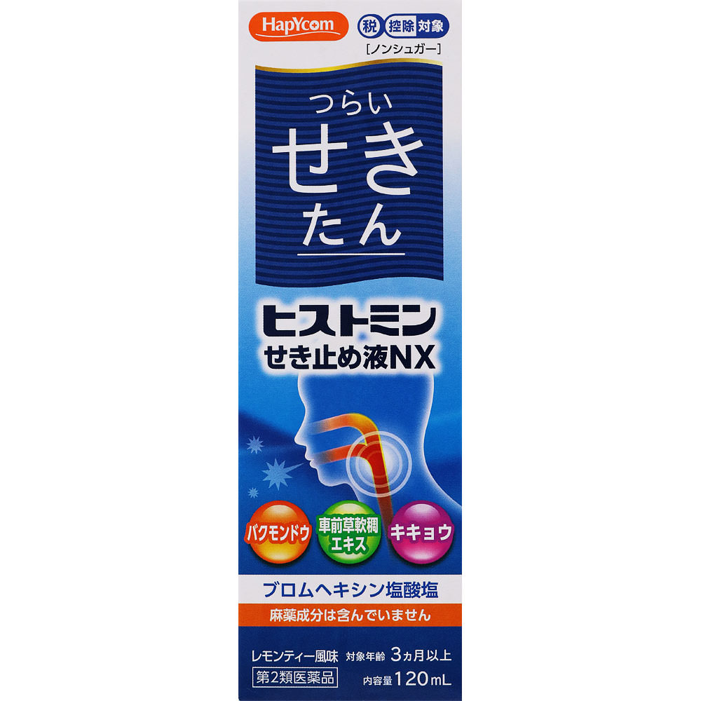 ●ヒストミンせき止め液NXは、不快なたんの排出を助けるブロムヘキシン塩酸塩や、せきをやわらげるチペピジンクエン酸塩をはじめ、せきやたんに効果のあるバクモンドウ・車前草・キキョウの3つの生薬成分を配合したせき止め薬です。