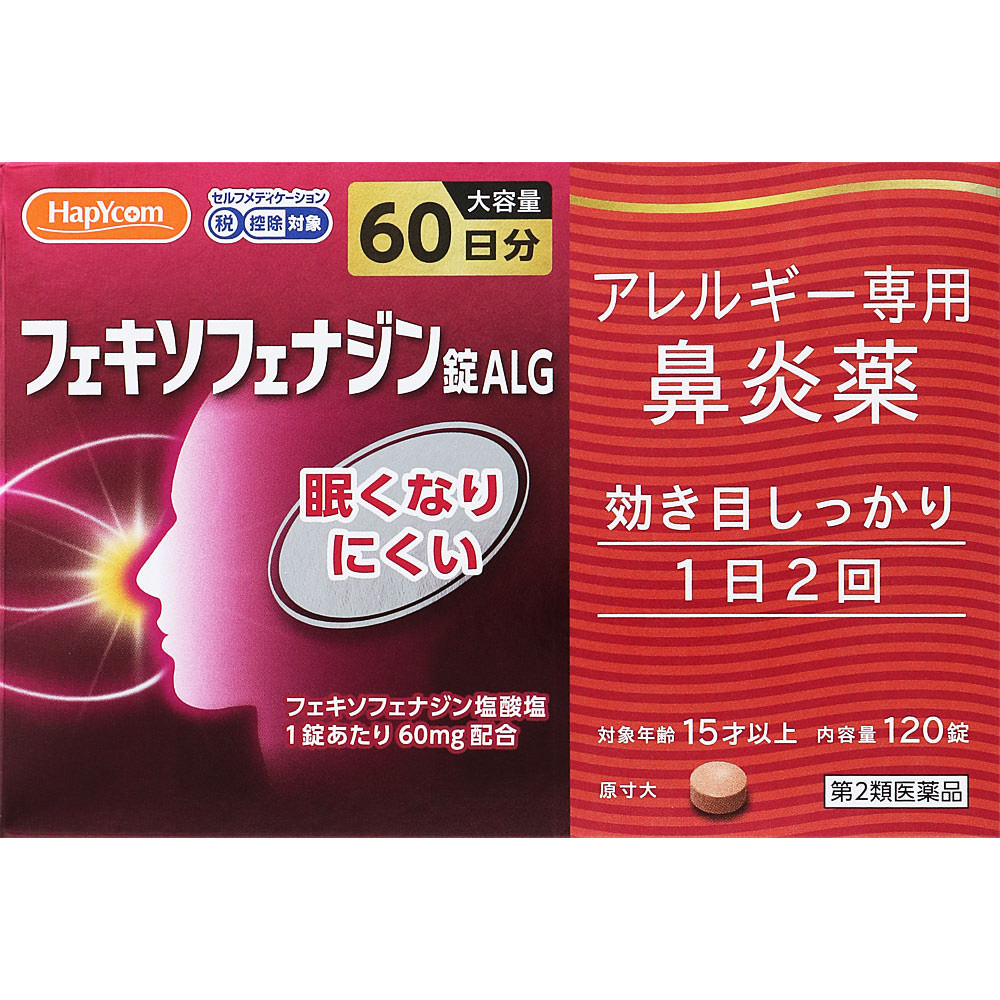 フェキソフェナジン錠ALGは、1回1錠、1日2回服用でフェキソフェナジン塩酸塩が花粉やハウスダストなどによるアレルギー症状を緩和します。また、口の中が渇きにくく、眠くなりにくいアレルギー専用鼻炎薬です。
