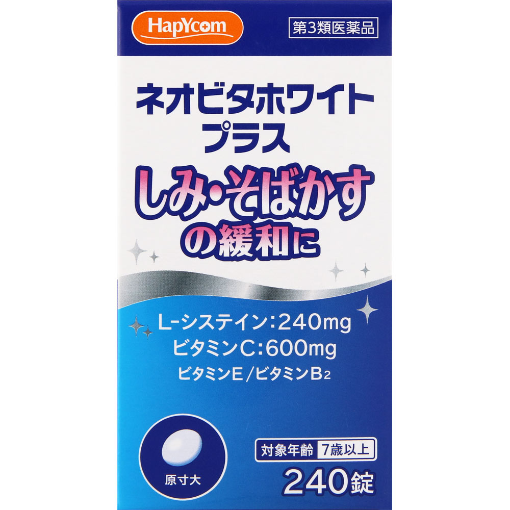 ネオビタホワイトプラス「クニヒロ」は、ビタミンCにL-システインと天然型ビタミンE、さらに皮膚の皮脂腺の働きを調節する持続型のビタミンB2を配合した製品です。