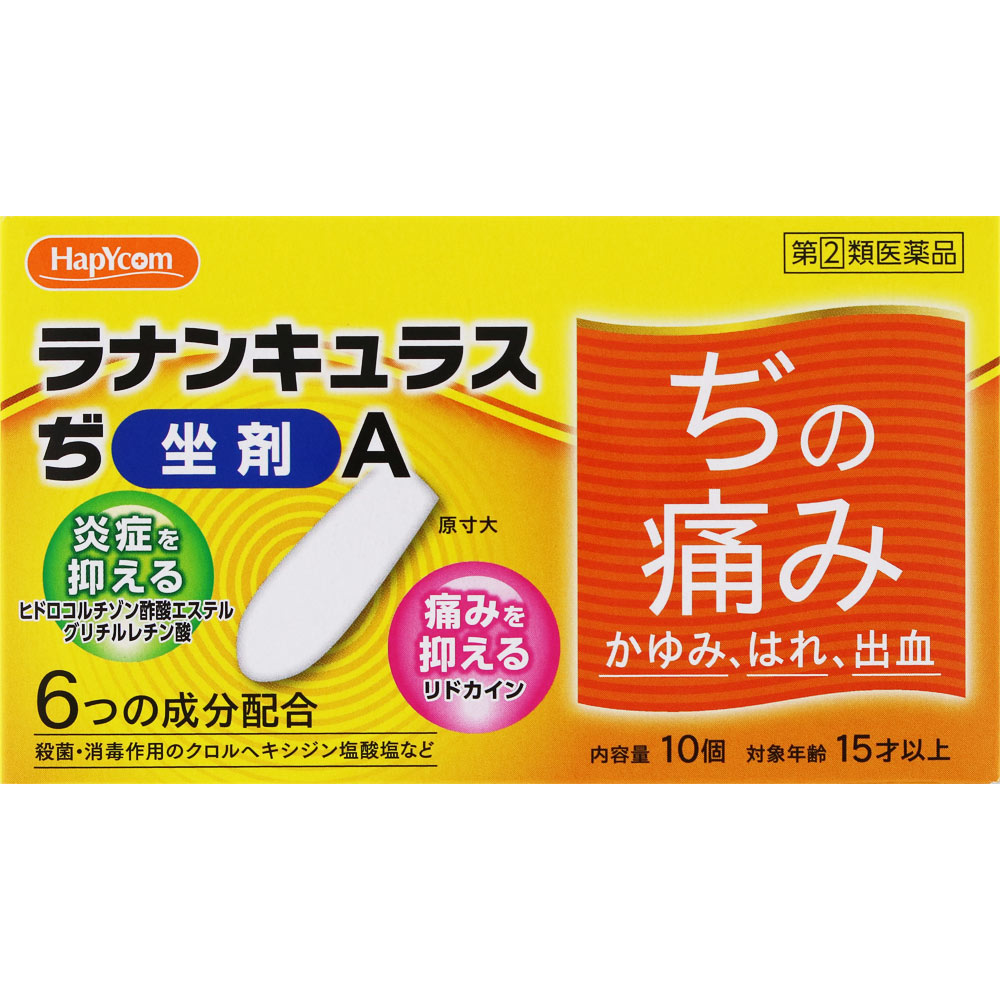 ラナンキュラスぢ坐剤Aは、痔の治療に有効なヒドロコルチゾン酢酸エステル、グリチルレチン酸など6種の有効成分を配合した痔疾用坐剤で痔の痛み、はれ、かゆみ、出血の不快な4つの症状の改善にすぐれた効果を発揮します。