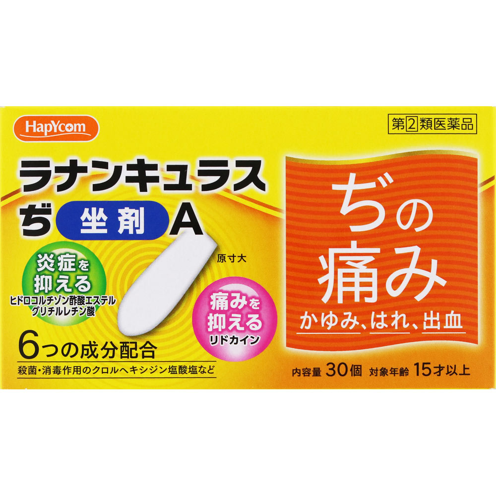 ラナンキュラスぢ坐剤Aは、痔の治療に有効なヒドロコルチゾン酢酸エステル、グリチルレチン酸など6種の有効成分を配合した痔疾用坐剤で痔の痛み、はれ、かゆみ、出血の不快な4つの症状の改善にすぐれた効果を発揮します。